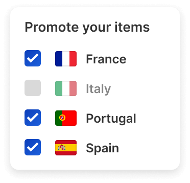 Your original listings are automatically translated and localized with Webinterpret’s natural language processing model. Promote your new international listings with Promoted Listings Standard and Promoted Listings Advanced for maximum reach and visibility on 11 international markets.