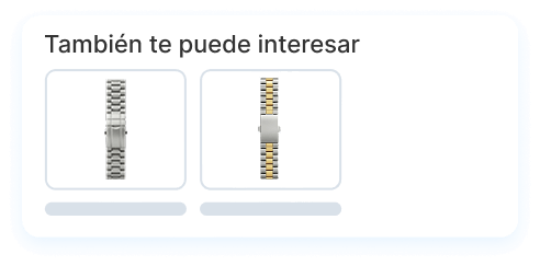 Ayude a los compradores a descubrir productos relacionados de su inventario mediante recomendaciones integradas que facilitan de forma natural la venta cruzada de tus artículos, mantienen a los compradores interesados en tu tienda y aumentan las ventas de tu negocio.