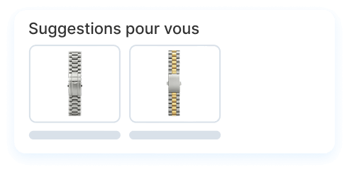 Aidez les acheteurs à découvrir des produits connexes de votre inventaire grâce à des recommandations intégrées qui permettent une vente croisée transparente de vos articles, maintiennent l’intérêt des acheteurs pour votre boutique et génèrent davantage de ventes pour votre entreprise.