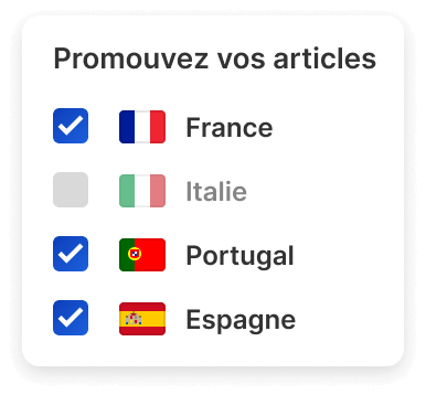 Publiez et promouvez vos articles sur jusqu'à 11 marchés internationaux