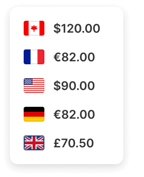 Le tue inserzioni localizzate hanno gli stessi prezzi di quelle nazionali, tuttavia non tutti i mercati eBay visualizzano gli articoli nella stessa valuta. Ad esempio, su eBay.co.uk i prezzi degli articoli vengono visualizzati in GBP (sterlina britannica), mentre su eBay.com sono in USD (il dollaro statunitense). Poiché 1 sterlina (GBP) equivale all’incirca a 1,3 dollari (USD), le versioni nazionali e localizzate degli articoli sono pubblicate con lo stesso valore.